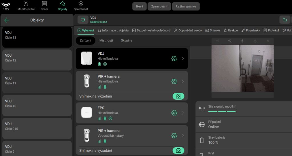 - Všechna zařízení lze napojit na centrální dohled přes PCO (Pult Centralizované Ochrany). Přehledné rozhraní umožňuje snadnou správu více lokalit z jednoho místa.