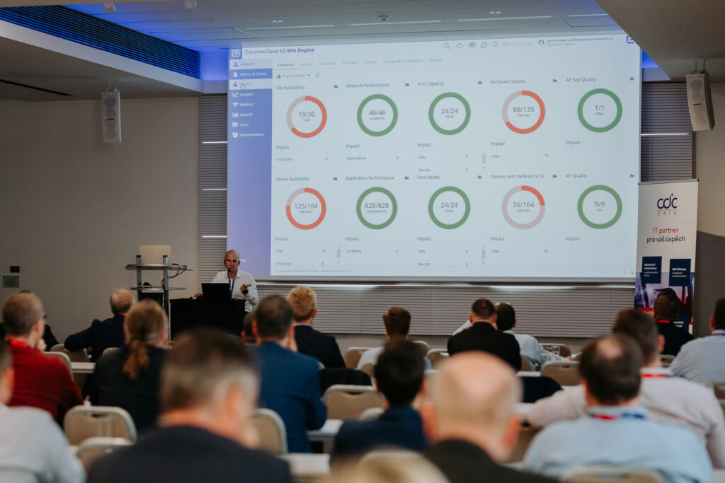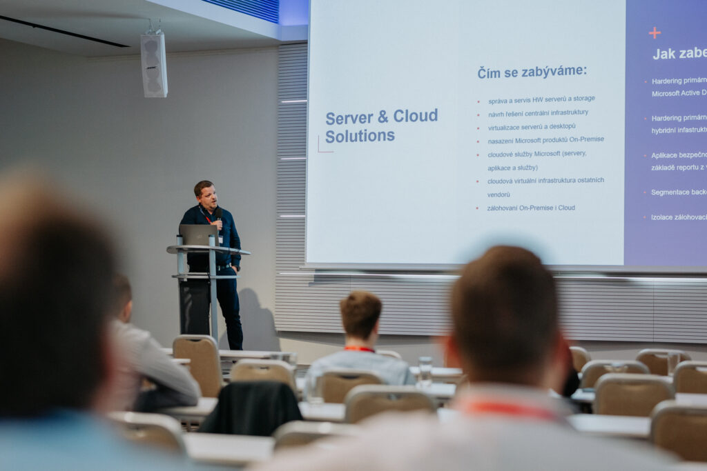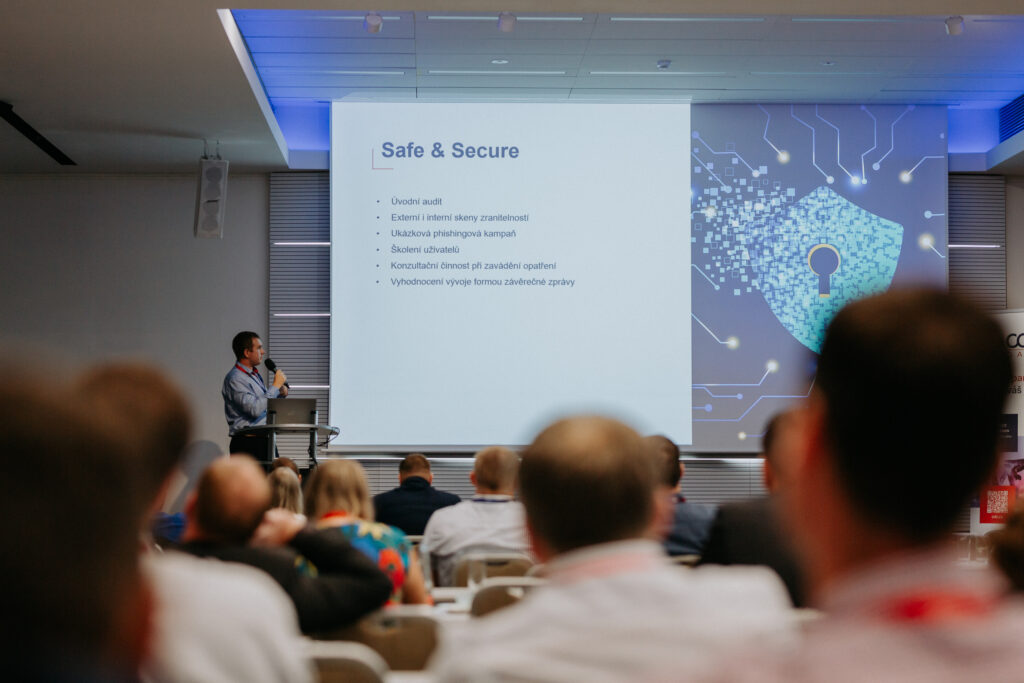 Při oficiální části se na pódiu vystřídali zástupci z našich řad a hosté se mohli dozvědět spoustu novinek a užitečných informací např. o ERP systému IFS Cloud, o DMS M-Files, nebo o naší službě Safe&Secure. Odborný program dále obohatily přednášky našich hostů ze společností Inekon, Extreme Networks či ESET.
