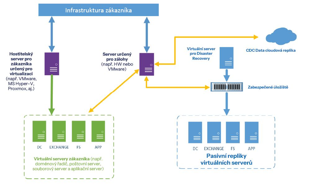 - Zajištění kontinuity – i v případě havárie nebo kybernetického útoku zajistí DRS rychlou obnovu systémů.