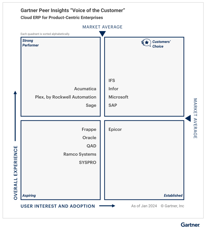 Společnost IFS byla oceněna v kategorii „Hlas zákazníka pro cloudový ERP pro podniky zaměřené na produkty“, a to ve všech třech následujících kategoriích: