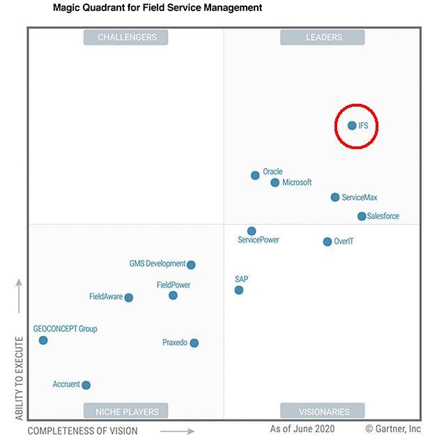 Nejnovější umístění v Gartner Magic Quadrant pro Field Service Management (FSM) považuje IFS za důkaz své dlouhodobé strategie investování do produktů a jedinečného zaměření na zákazníka. Od roku 2014 je IFS v tomto výzkumu uznávána jako leader.