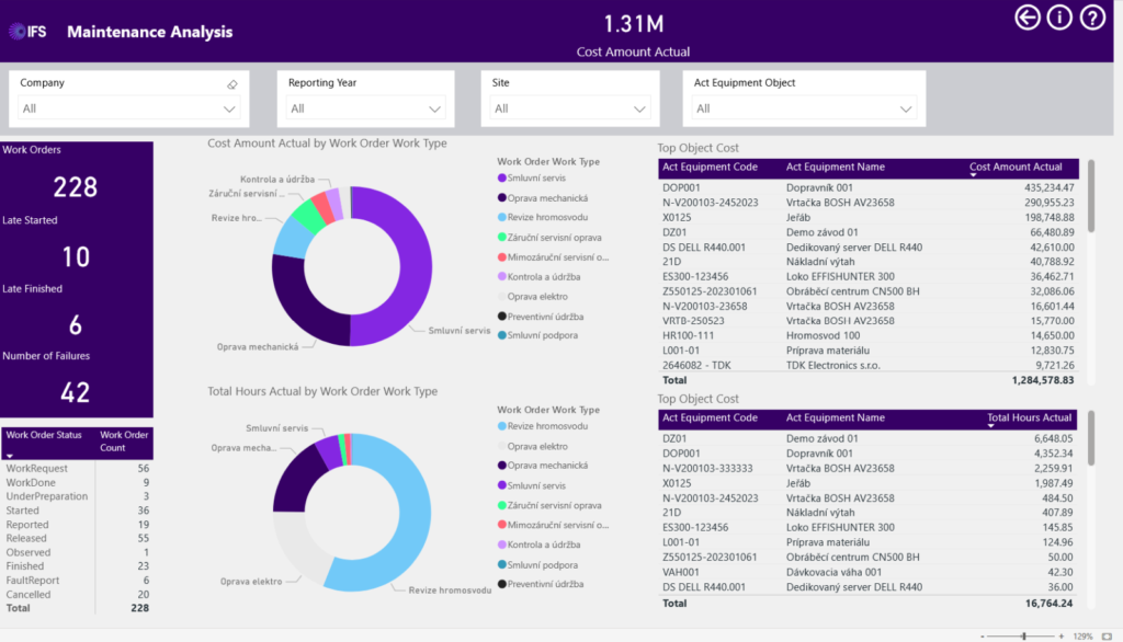- Možnost integrace různých databázových zdrojů včetně IFS pro jednotnou analýzu všech informací.