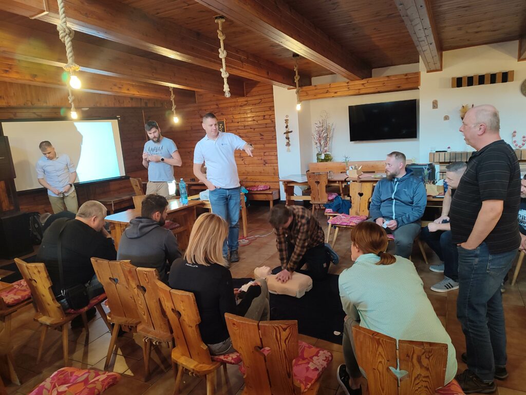 Odpolední náplní byl interaktivní kurz první pomoci, který nás v rámci teorie i praxe naučil, jak se chovat v nejčastějších, život ohrožujících situacích, se kterými se můžeme kdekoliv setkat. Děkujeme WorkMed s.r.o. za jejich skvělou práci a za vše, co nás naučili, bylo to velmi zajímavé, poučné a hlavně užitečné.